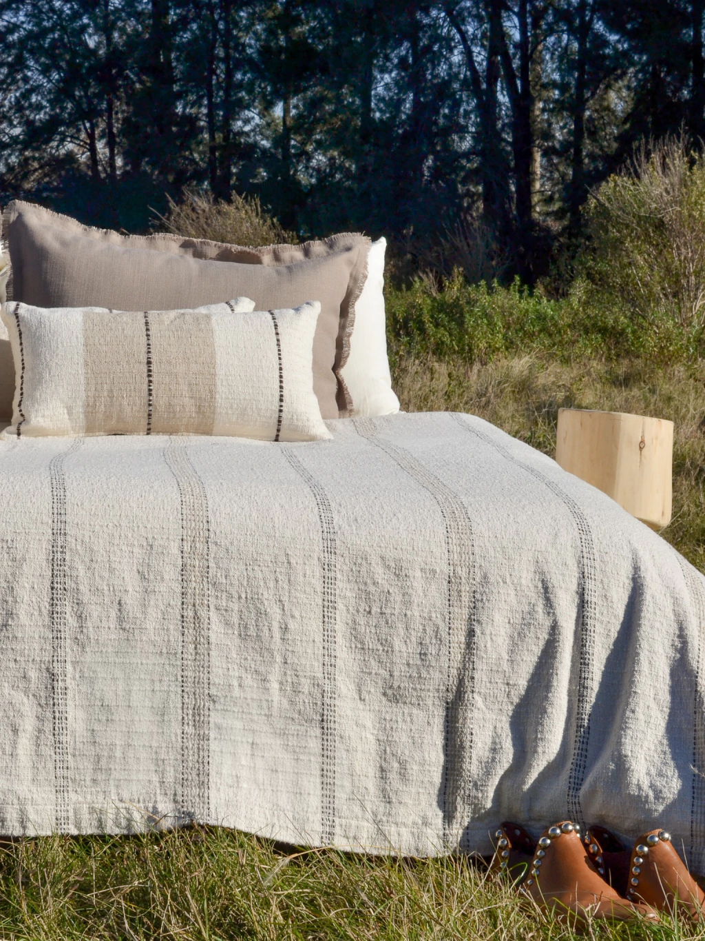 Su diseño artesanal y su trama firme acompañan la tendencia de lo natural y lo hecho para durar, creando una cama acogedora y con carácter.